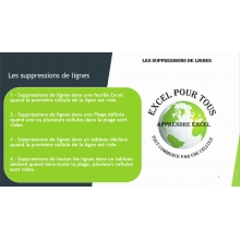 Dans cette vidéo, nous allons voir Les suppressions de lignes, et plus particulièrement les lignes contenant une ou plusieurs cellules vides.